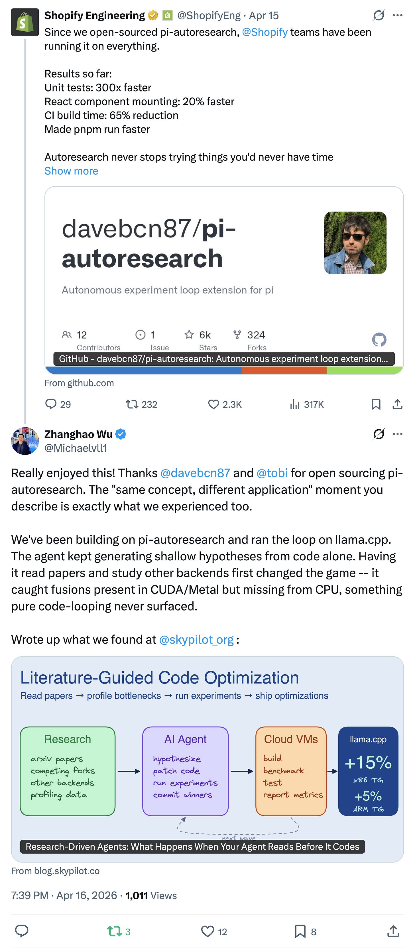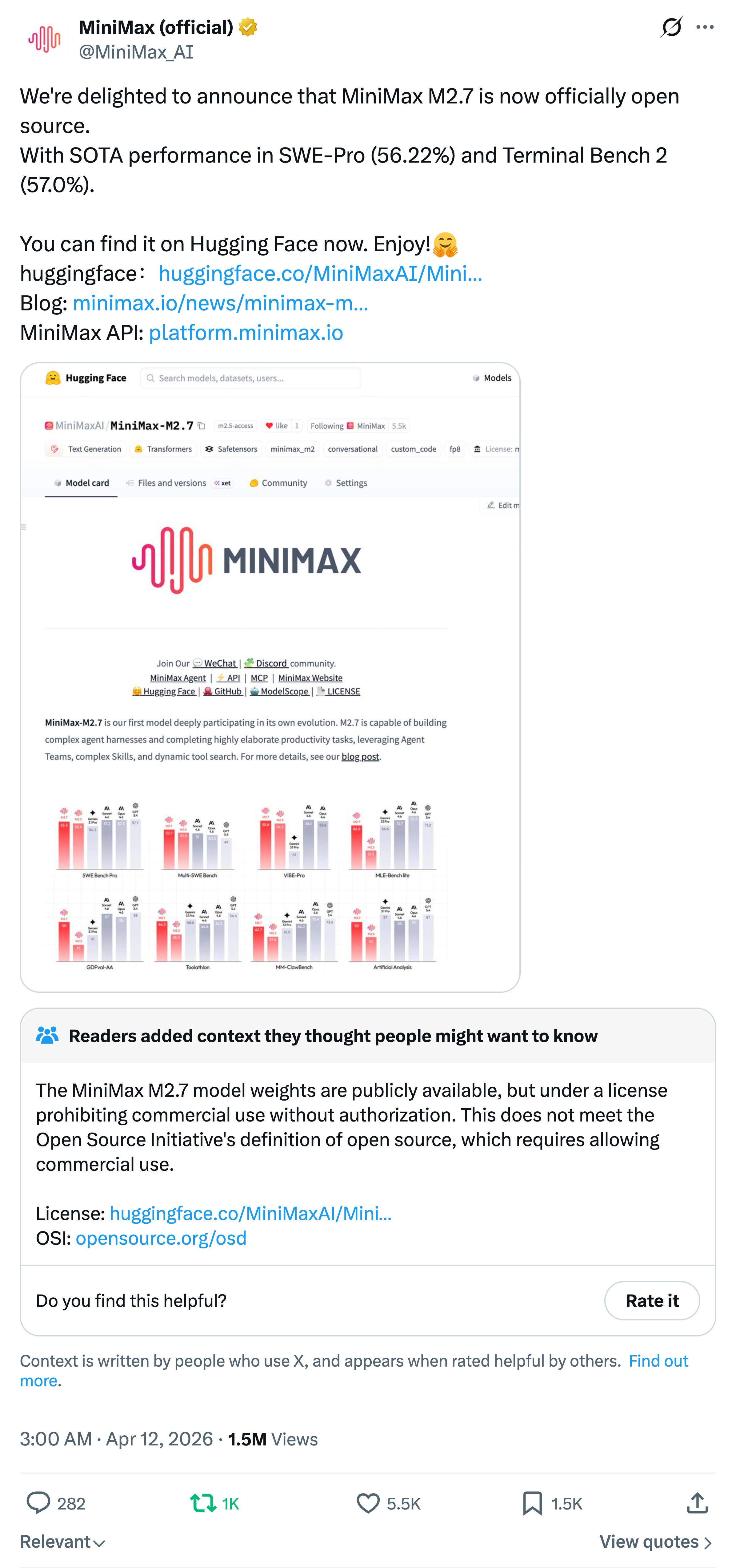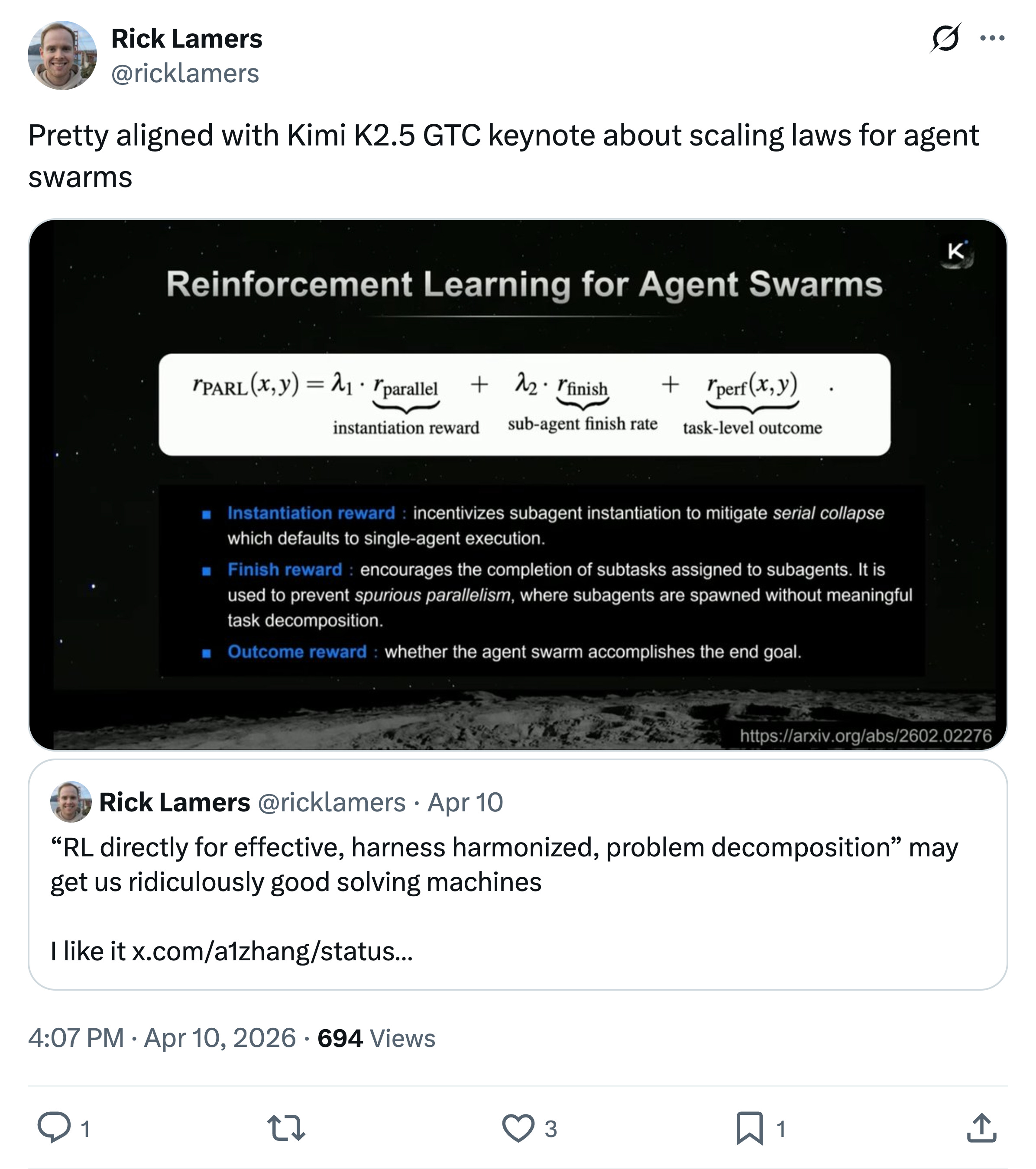 The format is I’ll take some of the top posts from the X feed that either I posted or caught my eye. Link to all posts included so you can dig deeper. This time some open source action (Qwen 3.6, MiniMax M2.7) some SOTA SWE numbers from Mythos, autoresearch trend (leave a comment about what your agents are autoresearching and how you fuel them strong hypotheses/ideas!) and a Kimi 2.5 swarm deep dive from their GTC talk. Enjoy!