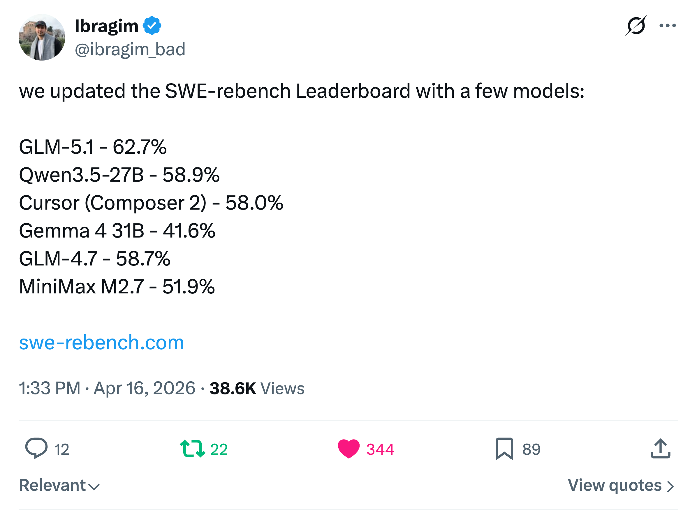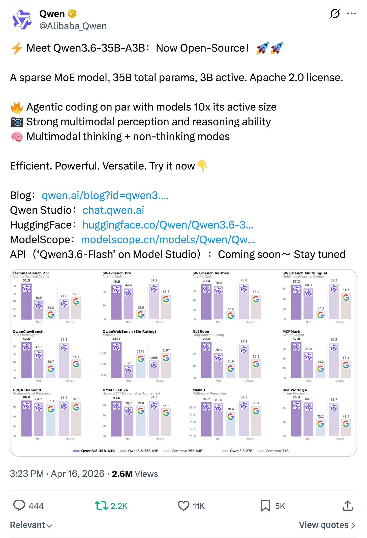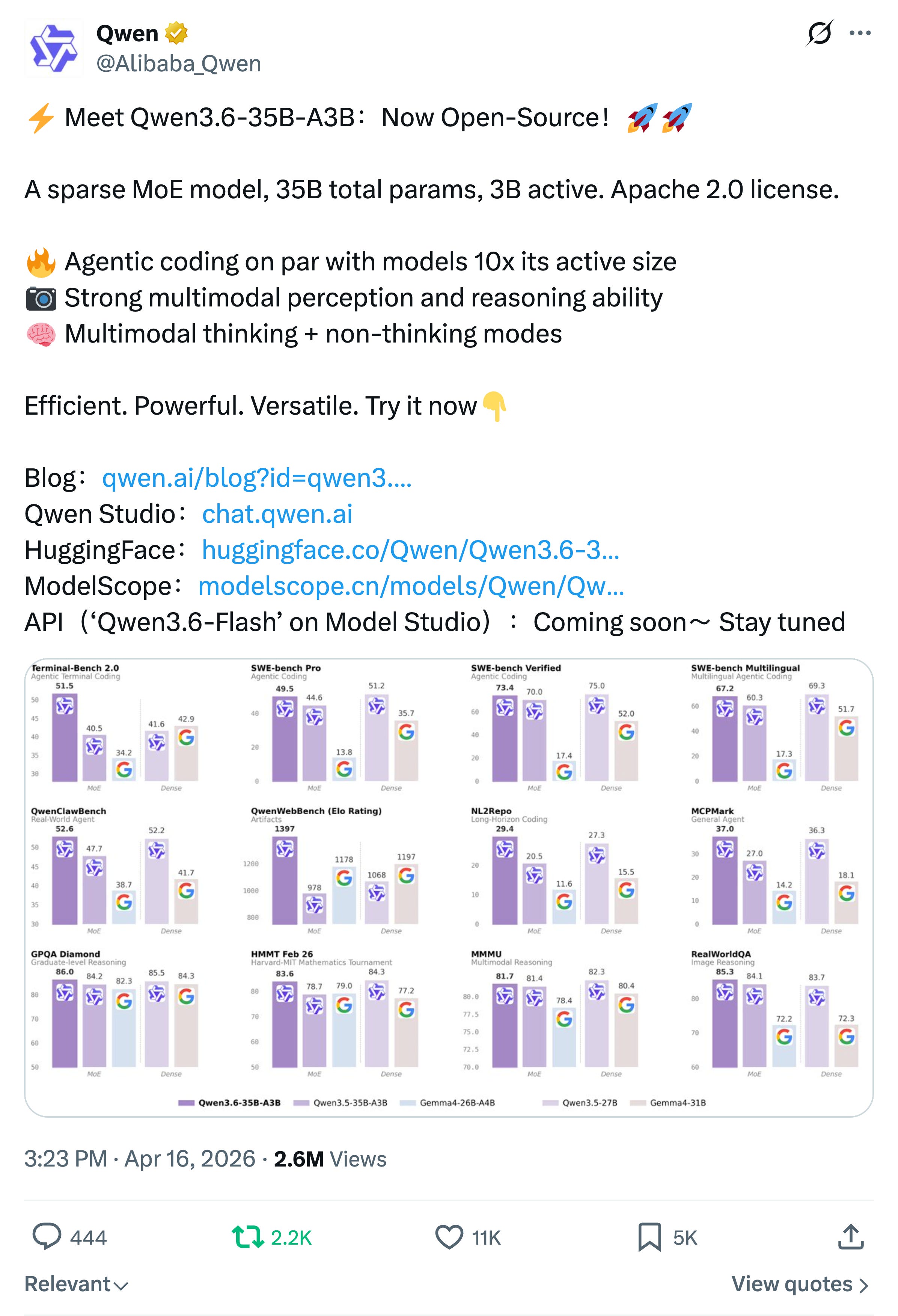 The format is I’ll take some of the top posts from the X feed that either I posted or caught my eye. Link to all posts included so you can dig deeper. This time some open source action (Qwen 3.6, MiniMax M2.7) some SOTA SWE numbers from Mythos, autoresearch trend (leave a comment about what your agents are autoresearching and how you fuel them strong hypotheses/ideas!) and a Kimi 2.5 swarm deep dive from their GTC talk. Enjoy!